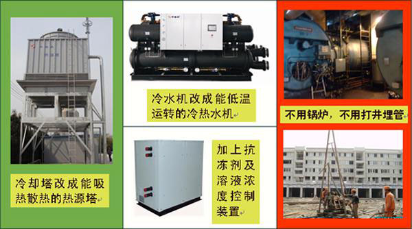 熱源塔熱泵系統(tǒng)純粹使用電力,系統(tǒng)更換十分方便,只要把冷卻塔改成夏天可以散熱、冬天可以吸熱的熱源塔,主機(jī)更換為可以低溫制熱的主機(jī),再加上一些配套設(shè)備,即可取消鍋爐,由于施工方便、節(jié)能效果好,是既有建筑改造的可行方案。