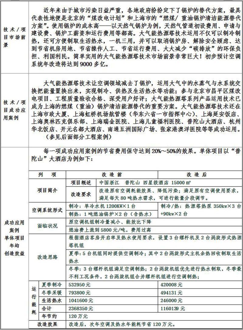 大氣能熱源塔系統(tǒng)——徹底取消鍋爐,實(shí)現(xiàn)一機(jī)三用(制冷、制熱、制取生活熱水一體化)。