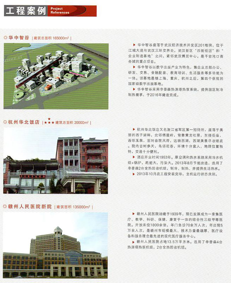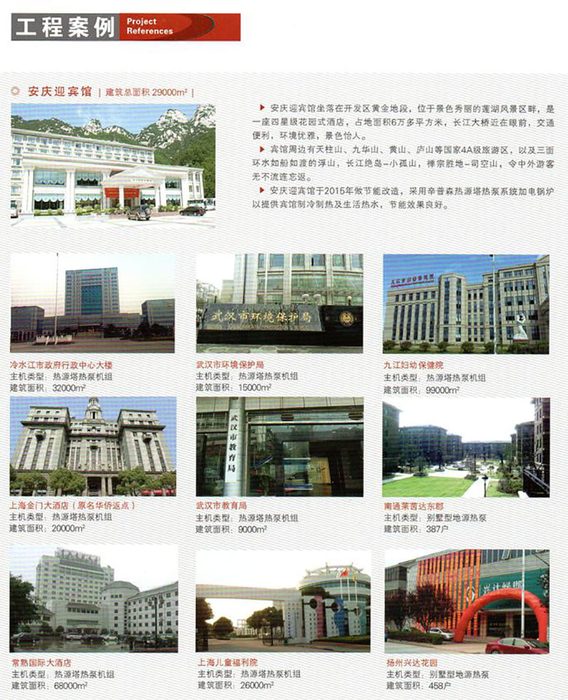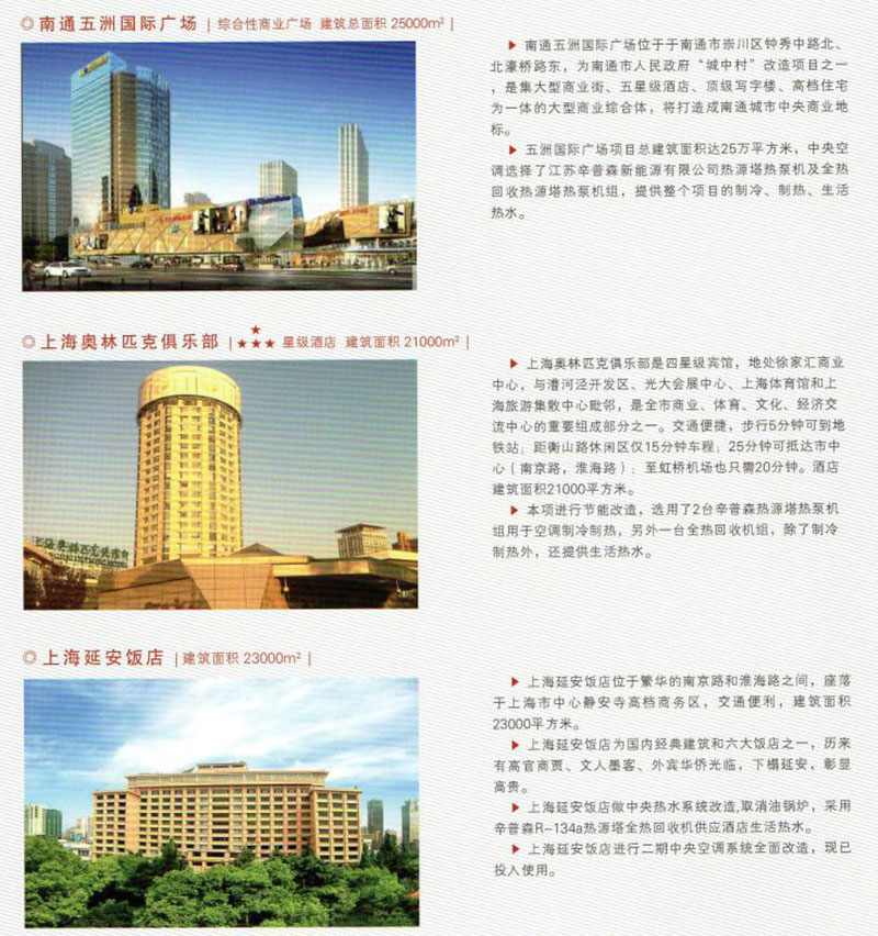 中國(guó)建筑科學(xué)研究院與江蘇辛普森新能源有限公司共同主編的中國(guó)工程建設(shè)協(xié)會(huì)標(biāo)準(zhǔn)-熱源塔熱泵系統(tǒng)應(yīng)用技術(shù)規(guī)程已于2014年4月1日正式頒布,可見(jiàn)其先進(jìn)性受到國(guó)家的肯定。(以上海為例)在上海市政大廈、上海瑞金醫(yī)院、上海延安飯店、上海虹橋機(jī)場(chǎng)航管樓、上海奧林匹克賓館、上海金門(mén)大酒店、上海兒童福利醫(yī)院等項(xiàng)目已有應(yīng)用實(shí)例。大氣能熱源塔技術(shù)還在杭州華北飯店、開(kāi)元名都大酒店、南通五洲國(guó)際廣場(chǎng)、張家港澳洋醫(yī)院等等成功運(yùn)用;真正讓空調(diào)系統(tǒng)中減去了鍋爐、實(shí)現(xiàn)制冷制熱制取生活熱水為一體,并節(jié)能效果約在20%-50%之間,真正開(kāi)辟了新能源的世界性革命。
