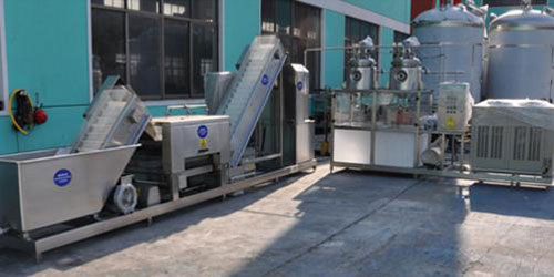 主要工作流程為:新鮮的橙子(檸檬、柑桔、柚子)經(jīng)過(guò)一道鼓泡清洗機(jī)進(jìn)入二道毛刷清洗機(jī),清洗后用隔板提升機(jī)輸送到杯式榨汁機(jī)緩沖室,通過(guò)杯式榨汁機(jī)榨出純天然不添加任何防腐劑的NFC新鮮果汁。