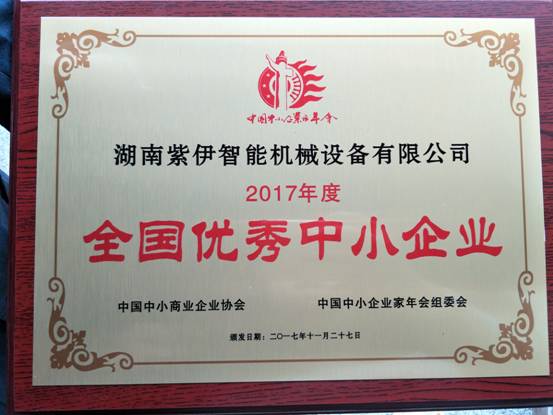 2017年11月27日--湖南紫伊智能機械設備有限公司榮獲“2017年度 全國優(yōu)秀中小企業(yè)”榮譽稱號;并作為中國中小商業(yè)企業(yè)協(xié)會“雙百優(yōu)秀企業(yè)”受邀參加在北京人民大會堂舉辦的年會和頒獎活動。紫伊智能高層領導在人民大會堂榮幸獲得“全國政協(xié)常委兼副秘書長、民革中央專職副主席 何丕潔;九三學社中央常委兼辦公廳主任、九三學社中央社會服務部部長 徐國權”等國家領導的親切接見與關懷!
